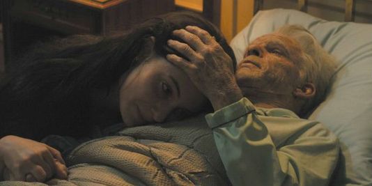 Mr. Oscar’s next appointment finds him transformed into Mr Vogan, an old man on his death bed sharing his final moments with his young, beautiful, and disabled niece, Léa (Élise Lhomeau). The blast of Shostakovich’s funeral march from his bleak final string quartet is like the music of death itself and sets the tragic tone. What follows is a tender scene, full of late life confessions and consolations, but it’s amusingly undercut when Mr. Oscar, having died, sheepishly gets out of bed, apologising that he must move onto his next job. I like how the scene plays it dead straight, in the tradition of cinematic last breaths, only to mercilessly expose the artifice. But what gives this a fascinating twist is that the two performers seem genuinely moved by the roles they’ve just played.